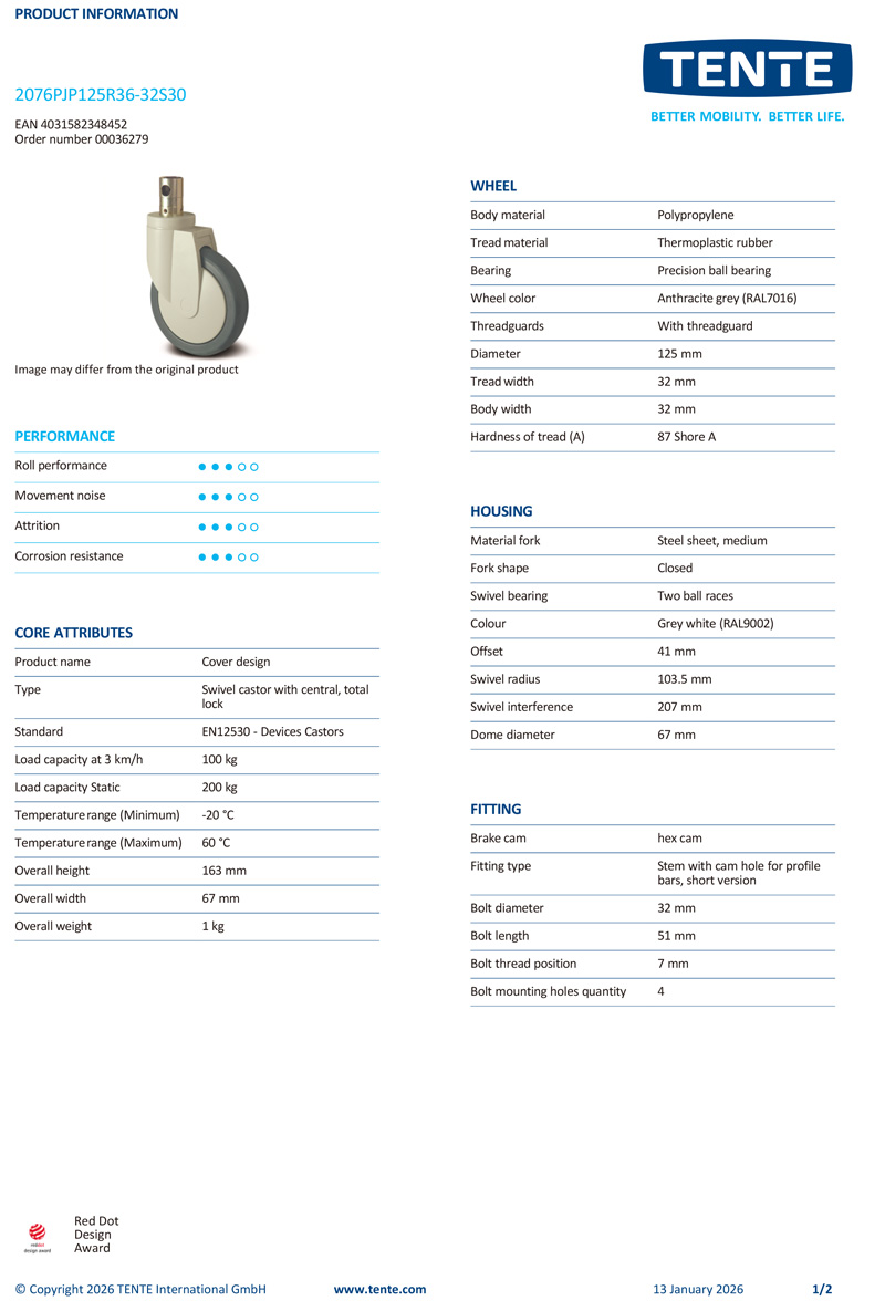 Tente swivel castor 2076PJP125R36-32S30